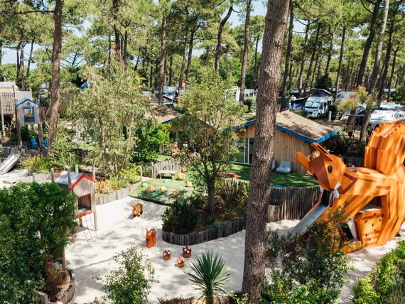 - A forest-themed children's play area: immersed in the enchanted world of the forest, your children can play on the swing, jump on the trampolines, play on the turnstile, slide down a giant squirrel, etc.